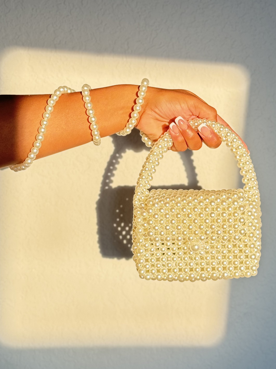 A lustrous pearl clutch, compact and timeless. A minimalist design which exudes sophistication while commanding attention. Pearlicious Purse is adored by the light with every movement, a celebration of femininity and simplicity.
